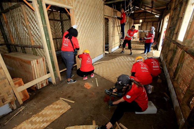 Para relawan atau PRUVolunteers dari 10 negara termasuk Indonesia, serta Hong Kong, Vietnam, Malaysia, Singapura, Filipina, Kamboja, Laos, Taiwan, dan Thailand, pada Jumat (17/3/2023), melakukan kegiatan membantu pembangunan pemulihan gempa Cianjur, Jawa Barat.