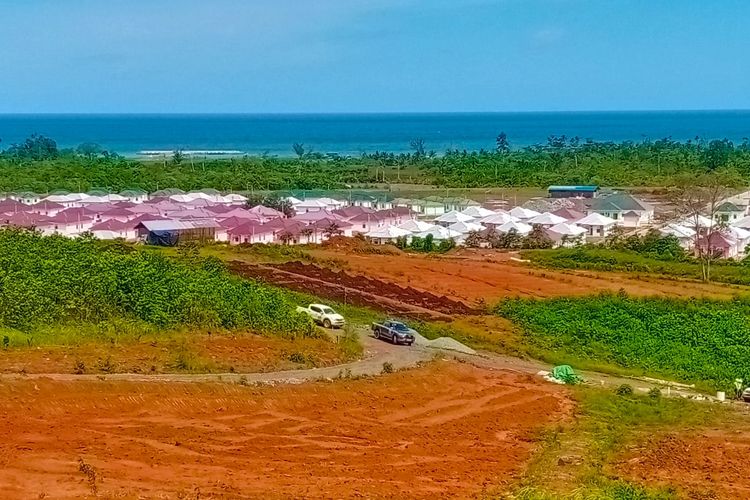 Rumah contoh yang menggunakan batako berbahan baku slag nikel di Kawasan Permukiman Baru Desa Kawasi, Halmahera Selatan, Provinsi Maluku Utara, Minggu (9/4/2023).