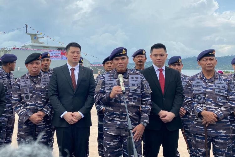 Kepala Staf Angkatan Laut (Kasal) Laksamana TNI Muhammad Ali saat peluncuran Kapal Korvet Bung Karno 369 di galangan PT Karimun Anugrah Sejati, Tanjunguncang, Batam, Kepulauan Riau (Kepri), Rabu (19/4/2023).