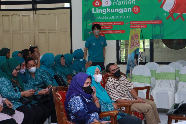Sebagian peserta Ajinomoto Ngabuburit Ramah Lingkungan bersama lembaga Rekosistem di Kecamatan Benowo, Kota Surabaya, Jawa Timur, Kamis (13/4/2023).
