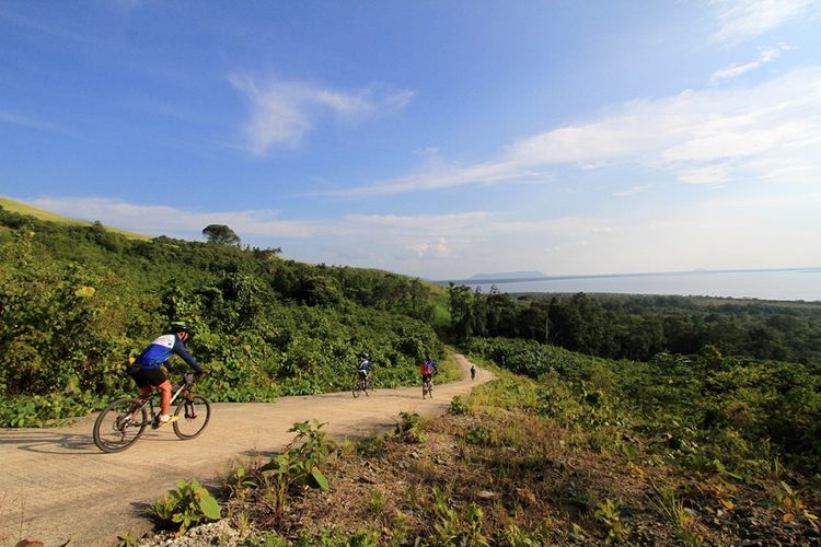 Peserta Bersepeda di Jantung Borneo saat melewati jalur sepanjang 65 kilometer dari Badau menuju Bukit Kedungkang, Kalimantan Barat, Sabtu (28/10/2017). Perhelatan Bersepeda di Jantung Borneo diselenggarakan bertepatan dengan agenda besar Festival Danau Sentarum Betung Kerihun, memadukan olahraga dan ekowisata serta mengajak masyarakat menyadari lebih dalam arti dari konservasi.(KOMPAS.com/YOHANES KURNIA IRAWAN)