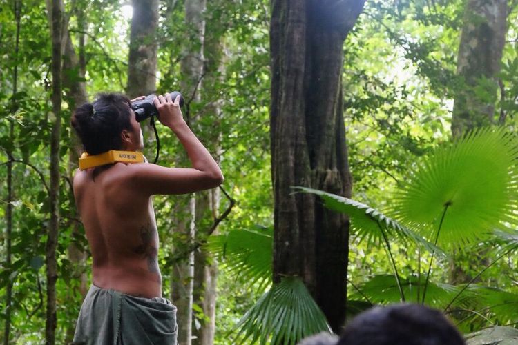 Ranger Taman Nasional Aketajawe Lolobata menemani tim Terios 7-Wonders melakukan pengamatan burung, Senin (17/7/2017)