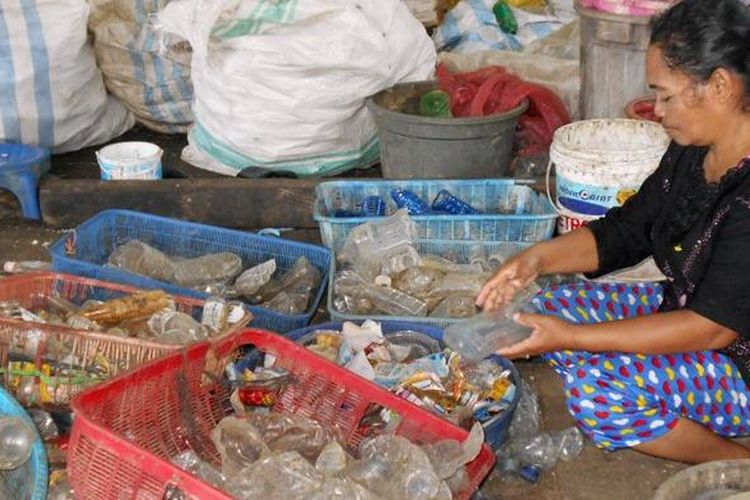 Ilustrasi proses pemilahan sampah plastik untuk proses daur ulang