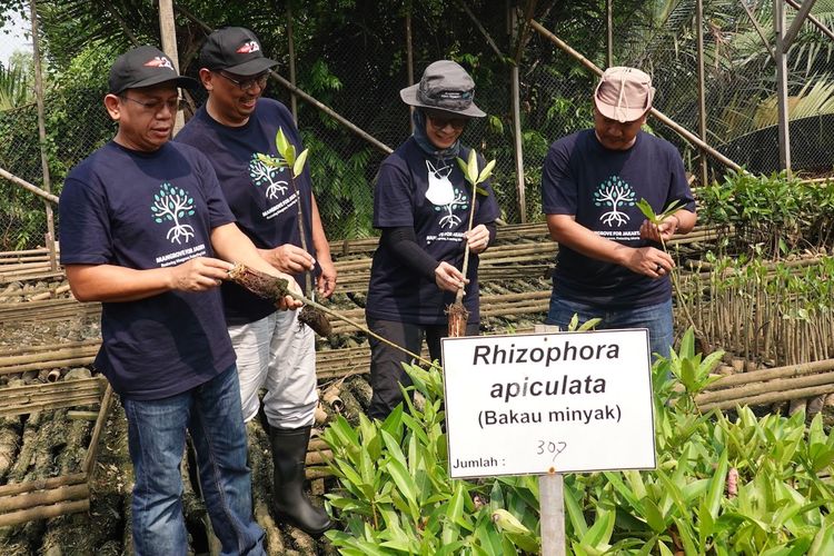 Balai Konservasi Sumber Daya Alam (BKSDA) Jakarta bersama Yayasan Konservasi Alam Nusantara (YKAN) dan Dow Indonesia melakukan penanaman mangrove di Kawasan SM Muara Angke, Jakarta, Kamis (13/7/2023).