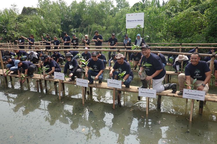 Balai Konservasi Sumber Daya Alam (BKSDA) Jakarta bersama Yayasan Konservasi Alam Nusantara (YKAN) dan Dow Indonesia melakukan penanaman mangrove di Kawasan SM Muara Angke, Jakarta, Kamis (13/7/2023).