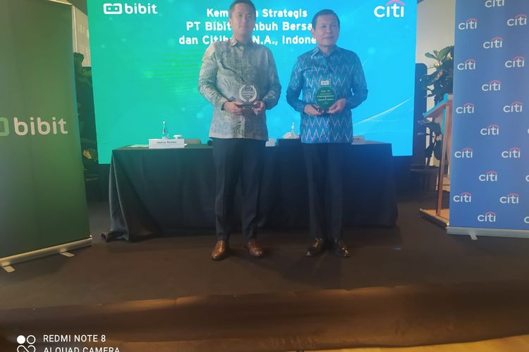 Berpose dari kiri ke kanan CEO dan Co-founder Bibit Sigit Kouwagam dan CEO Citi Indonesia Batara Sianturi pada kemitraan strategis perluasan wealth management kedua pihak, Kamis 920/7/2023) di Jakarta.