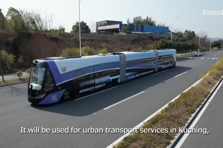 Tangkapan layar dari video yang menunjukkan trem bertenaga hidrogen buatan anak perusahaan China Railway Rolling Stock Corporation (CRRC), Zhuzhou Electric Locomotive Research Institute, yang akan dioperasikan Malaysia.