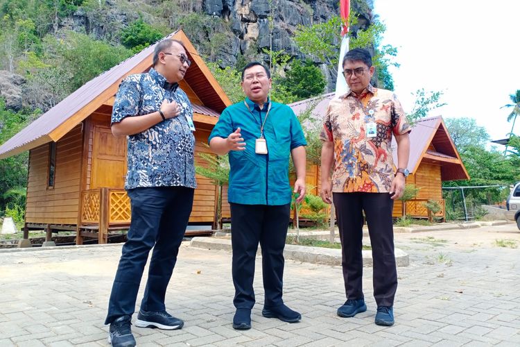 PT Sarana Multigriya Finansial (Persero) atar SMF mendukung pembiayaan homestay Desa Wisata Salenrang, Kabupaten Maros, Sulawesi Selatan lewat penandatanganan kerja sama dengan BUMDes setempat, Jumat (11/8/2023). Tampak Direktur Utama SMF Ananta Wiyogo, didampingi Direktur Sekuritisasi dan Pembiayaan Heliantopo, dan Direktur Keuangan dan Operasional Bonai Subiakto.(KOMPAS.com/Hilda B Alexander)
