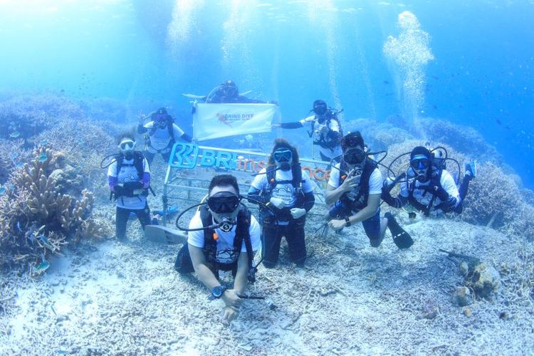 BRI Insurance cabang Manado bekerja sama dengan Seasoldier Sulut mengelar kegiatan transplantasi terumbu karang di Taman Nasional Bunaken Manado, Sulawesi Utara, Kamis (24/8/2023).
