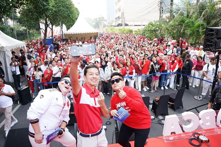 Wakil Presiden Direktur BCA Armand W. Hartono (tengah) melakukan swafoto bersama peserta Gebyar BCA Merah Putih.
