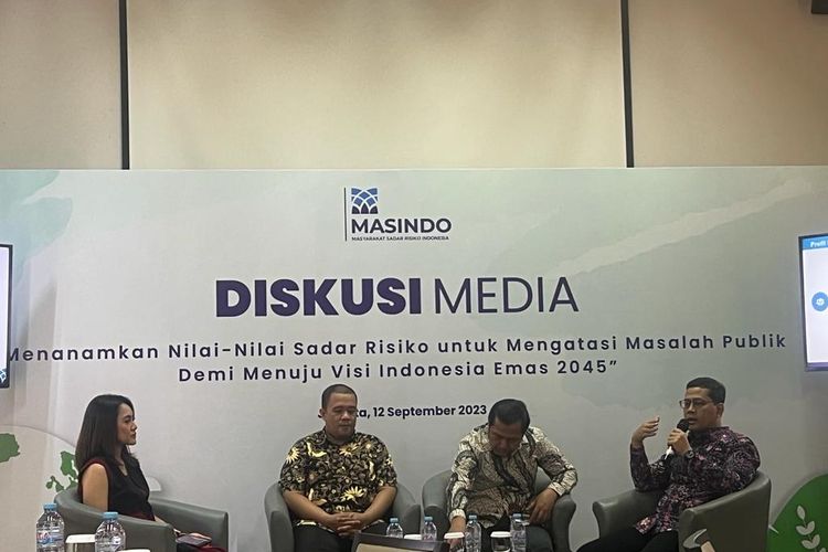 Prof. Dede Anwar Musadad, SKM, M.Kes, Peneliti Utama Organisasi Riset Kesehatan BRIN, Pengamat Kebijakan Publik Center of Youth and Population Research (CYPR) Boedi Rheza S.E, dan Dimas Syailendra Ketua MASINDO dalam diskusi media di Jakarta, Selasa (12/9/2023).(Kompas.com/Suhaiela Bahfein)