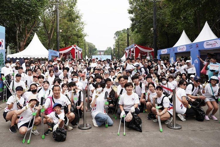 Memperingati 50 tahun hubungan diplomatik Indonesia dan Korea Selatan, KT&G menggelar kegiatan plogging melibatkan warga Indonesia dan Korea di Stadion GBK, Jakarta (24/9/2023).