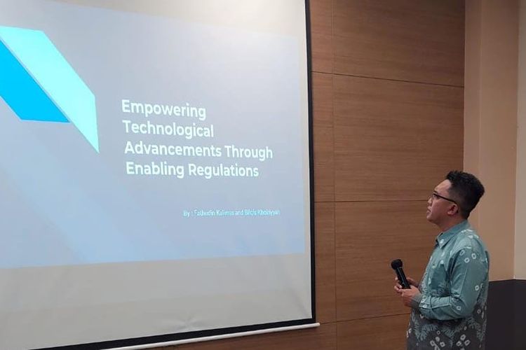 Fathudin Kalimas, salah satu peneliti, saat menyampaikan paparan makalahnya yang berjudul Empowering Technological Advancements Through Enabling Regulations, dalam International Conference on Interreligious Studies, Sciences, and Technology (ICONIST) 2023. Forum ini bertajuk ?Religion (still) Matters: Navigating the Relevance of Religion Across the Issue of Environment, Renewable Technology, Artificial Intelligence and Social Inclusion? yang berlangsung pada 6-7 November di Discovery Hotel, Ancol, Jakarta.(UIN)