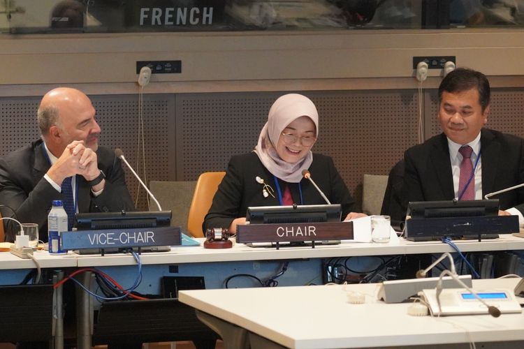Ketua Badan Pemeriksa Keuangan (BPK) RI Isma Yatun (tengah), dalam kapasitas sebagai Ketua Panel Eksternal Auditor Perserikatan Bangsa-Bangsa (PBB) bertemu dengan Sekretaris Jenderal (Sekjen) PBB Antonio Guteres di Markas Besar PBB di New York, Amerika Serikat.(BPK RI)