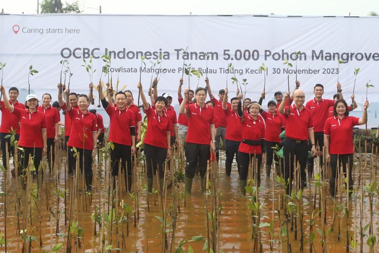 OCBC Indonesi tanam 5.000 mangrove sebagai upaya pencegahan perubahan iklim dan pemanasan global, Kamis (30/11/2023).