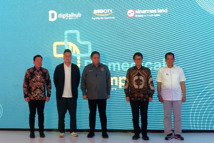 Sinarmas Land meluncurkan Biomedical Campus di Digital Hub BSD City, Tangerang, Sabtu (2/12/2023). Peluncuran ini dihadiri oleh Menteri Koordinator Perekonomian Airlangga Hartarto, dan Menteri Kesehatan Budi Gunadi Sadikin, didampingi Group CEO Sinarmas Land Michael Widjaja.(KOMPAS.com/Hilda B Alexander)