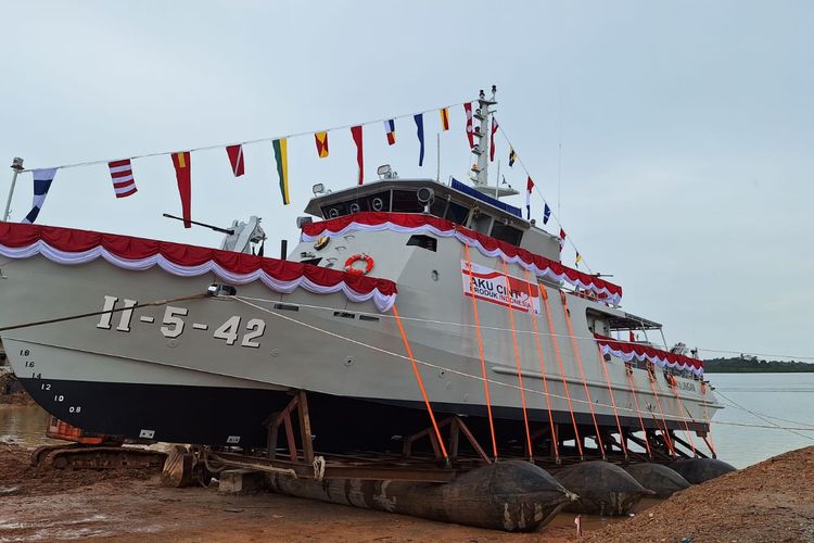 entara Nasional Indonesia (TNI) Angkatan Laut (AL) melaksanakan Shipnaming dan Launching dua Kapal KAL 28 meter, yaitu KAL Sembulungan dan KAL Hinako di galangan kapal PT Citra Shipyard, Batam, Kepulauan Riau (Kepri), Senin (4/12/2023)(KOMPAS.com/Hadi Maulana)