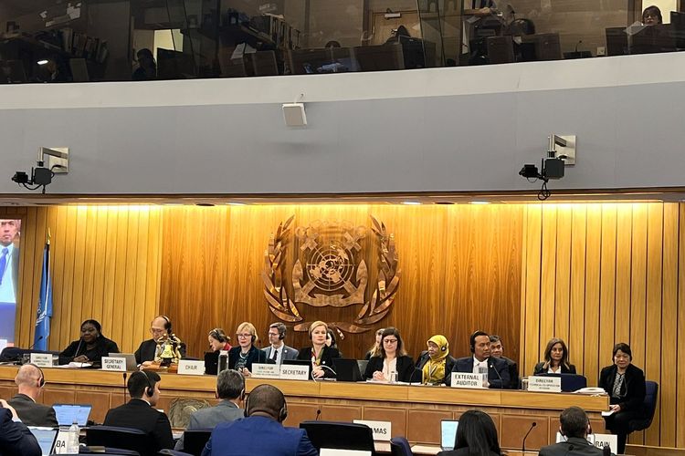 Badan Pemeriksa Keuangan (BPK) memaparkan hasil pemeriksaan laporan keuangan dan kinerja International Maritime Organization (IMO) tahun 2021 dan 2022, dalam the 33rd Session of IMO Assembly Meeting (Sidang Majelis IMO) pada Senin (4/12) di Kantor Pusat IMO di London, Inggris.(BPK RI)