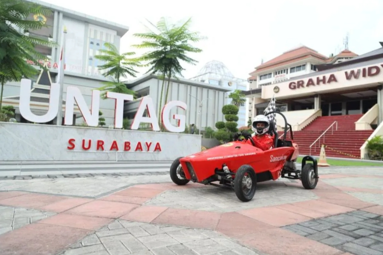 Mahasiswa Program Studi D3 Teknologi Manufaktur Fakultas Vokasi Universitas 17 Agustus 1945 (Untag) Surabaya saat menguji coba mobil listrik Sancaka.