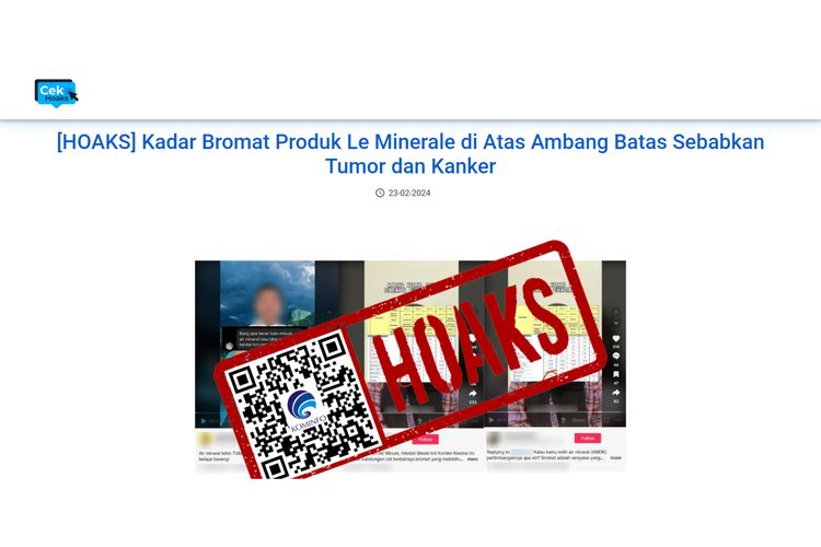 Kemenkominfo memberi label HOAKS pada beberapa unggahan di TikTok yang menyebarkan isu yang menyebut kadar bromat pada Le Minerale melebihi batas aman dan bisa menyebabkan penyakit serius, seperti tumor dan kanker.