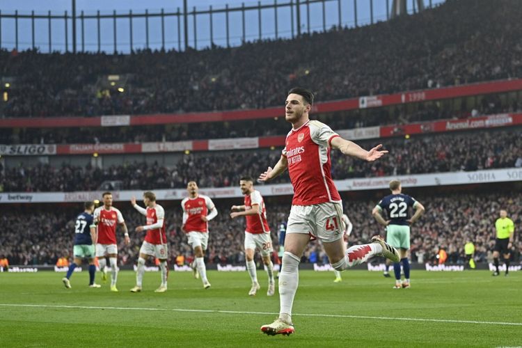 Penyerang Arsenal, Kai Havertz, merayakan gol pada laga Liga Inggris kontra Brentford di Stadion Emirates, London, pada Minggu (10/3/2024) dini hari WIB. Artikel ini berisi klasemen Liga Inggris.