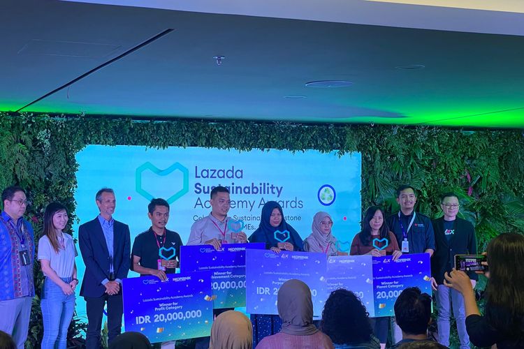Para pemenang Lazada Sustainability Academy (LSA) Awards 2024 di Jakarta, Rabu Rabu (27/3/2024).