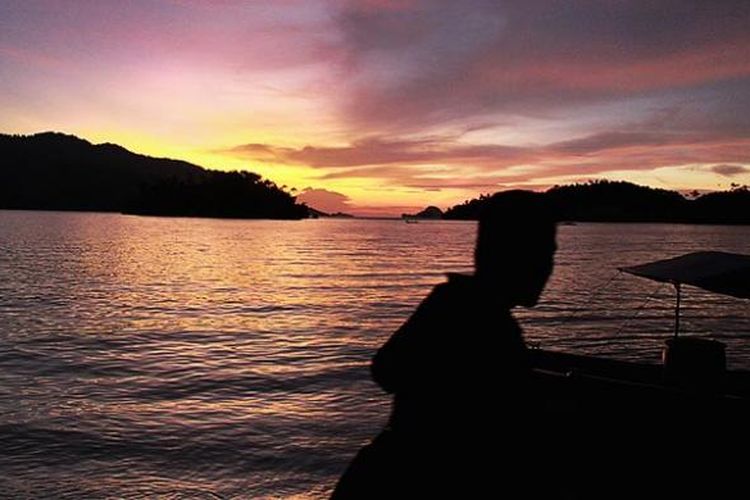 Senja di pantai Pulau Triton, Kabupaten Kaimana, Papua Barat, beberapa waktu lalu. Pulau ini merupakan bagian kawasan konservasi laut Kabupaten Kaimana yang kaya keanekaragaman hayati bawah laut dengan jajaran bukit karst berhias lukisan dinding kuno di sekitarnya.(KOMPAS/IRENE SARWINDANINGRUM)