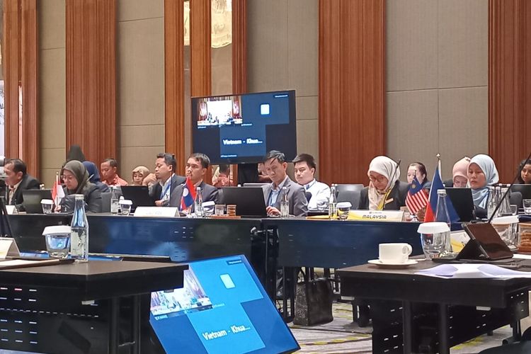 Delegasi negara anggota ASEAN (Indonesia, Malaysia, Singapura, Thailand, Filipina, Brunai Darusalam, Vietnam, Laos, Myanmar, Kamboja dan Timor Leste) yang hadir dalam pembahasan pengembangan hasil hutan di Kawasan Asia Tenggara saat gelaran AWG-FPD ke-27 di di Puncak, Bogor, Jawa Barat, Selasa (16/7/2024).(KOMPAS.com/AFDHALUL IKHSAN)