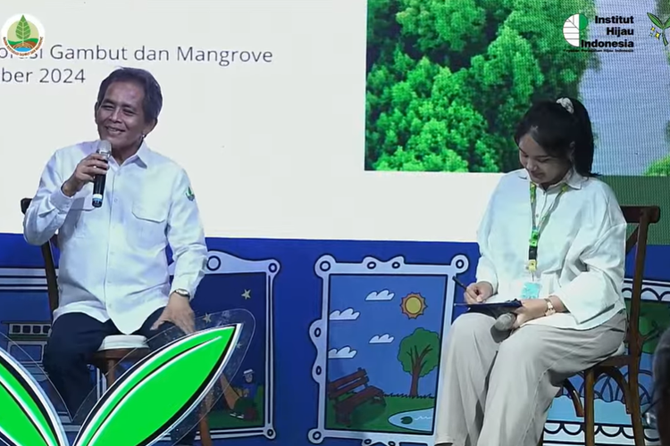 Kepala Badan Restorasi Gambut dan Mangrove (BRGM), Hartono Prawiraatmadja saat menyampaikan paparan sesi dialog Sistem Penyangga Kehidupan dan Triple Planetary Crisis dalam rangkaian Youth Conservation Fest 2024 di Jakarta, Selasa (1/10/2024).(Tangkapan layar Youtube/Faqihah Muharroroh Itsnaini)