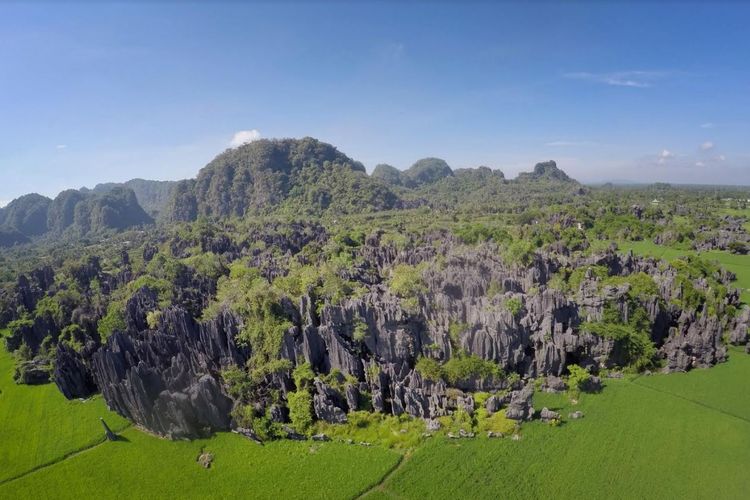 Keindahan bentangan karst di Taman Nasional Bantimurung Bulusaraung yang berbentuk menara.