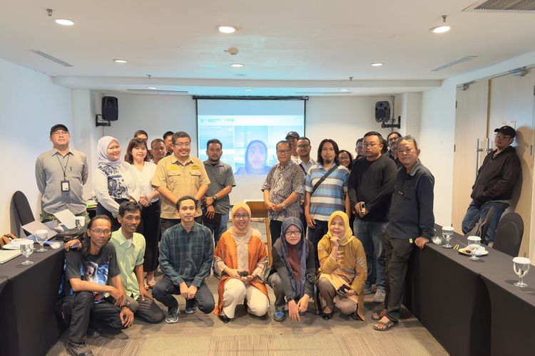 Aryansyah Ahmad Sulaiman Soleh, Kepala Bidang Energi, Dinas Energi dan Sumber Daya Mineral (ESDM) Provinsi Sumatera Selatan bersama rekan-rekan jurnalis pada Lokakarya Media: Perkembangan Kerangka Kebijakan dan Regulasi Transisi Energi di Indonesia yang dilaksanakan di Palembang pada Selasa (22/10/2024).(Dok. IESR)