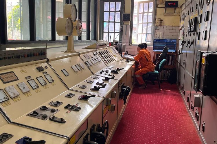 Petugas PLN Indonesia Power mengatur operasi PLTA Bengkok di Bandung yang sudah beroperasi sejak 1923.