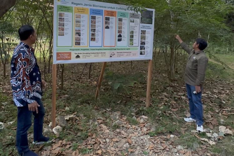 Sekretaris Perusahaan PLN Energi Primer Indonesia, Mamit Setiawan (kanan) bersama Lurah Gombang, Supriyadi (kiri) di lokasi Pengembangan Ekonomi Hijau milik PLN EPI pada akhir Juli 2024. PLN EPI mengembangkan ekonomi kerakyatan dan energi hijau melalui penanaman tanaman indogofera di Kalurahan Gombang. PLN melalui PLN EPI mewujudkan komitmennya mengurangi emisi karbon melalui program co-firing biomassa di Pembangkit Listrik Tenaga Uap (PLTU).(KOMPAS.com/WAHYU ADITYO PRODJO)
