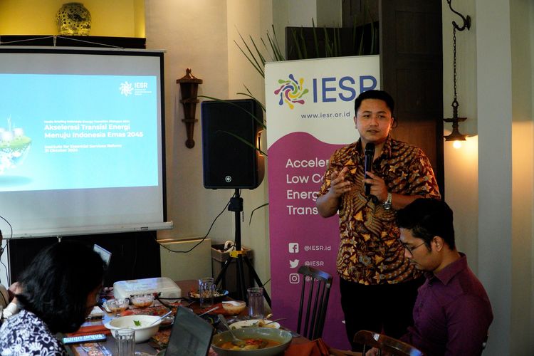 Manajer Program Transformasi Sistem Energi Institute for Essential Services Reform (IESR) Deon Arinaldo berbicara dalam Media Briefing Indonesia Energy Transition Dialogue (IETD) 2024: Memo Kebijakan Transisi Energi di Indonesia di Jakarta, Kamis (31/10/2024).(IESR)