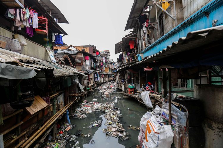 Tumpukan sampah terlihat di bantaran kali Jalan Jati Bunder, Kel. Kebon Melati, Kec. Tanah Abang, Jakarta Pusat , Selasa (5/9/2017). Pemprov DKI Jakarta bersama dengan bersama dengan Pemerintah Pusat akan menata kawasan kumuh melalui pencanangan program 100-0-100 yang dicanangkan Kementerian Pekerjaan umum dan Perumahan Rakyat dengan target Jakarta bebas dari kawasan kumuh pada tahun 2019.(KOMPAS.com/GARRY LOTULUNG)