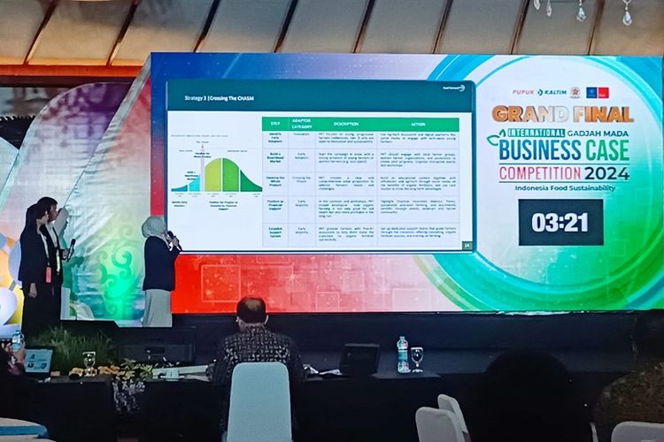 Salah satu tim peserta PKT-GAMA BCC 2024 mempresentasikan ide dan inovasinya di hadapan para juri.