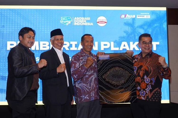 Sekjen ADI Al Arif, Guru Besar UIN Jakarta yang juga Ketua Umum Asosiasi Dosen Indonesia -Sekretaris Armai Arief, Wakil Menteri Pendidikan Tinggi Sains, dan Teknologi (Dikti Saintek) Fauzan, dan Ketua Asosiasi Dosen Indonesia sekaligus Guru Besar di Departemen Teknik Sipil, Fakultas Teknik, Universitas Indonesia,Mohammed Ali Berawi, saat agenda seminar nasional yang digelar Dahua Indonesia.(Dok Dahua Indonesia)