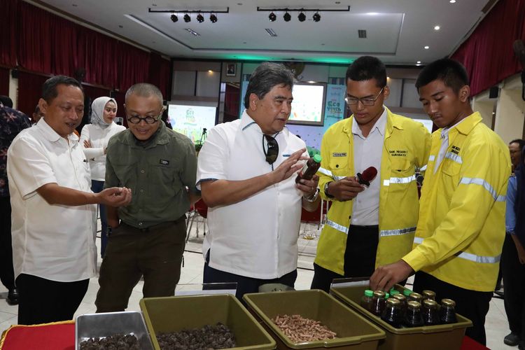 Inovasi dari SMKN 5 Surabaya. Proyek ini mengusung tema Pemanfaatan Limbah Daun Sebagai Bahan Baku Pembuatan Pupuk Granula dengan Menggunakan Energi Alternatif Biogas sebagai Bahan Bakar Sieving Machine.