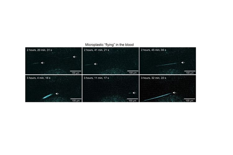 Mikroplastik terbukti bisa menyumbat pembuluh darah tikus. Pendaran menunjukkan mikroplastik pada pembuluh darah.
