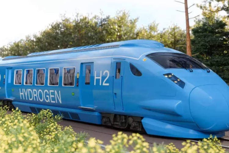 Ilustrasi kereta api bertenaga hidrogen yang akan dioperasikan di India bulan Desember 2024.