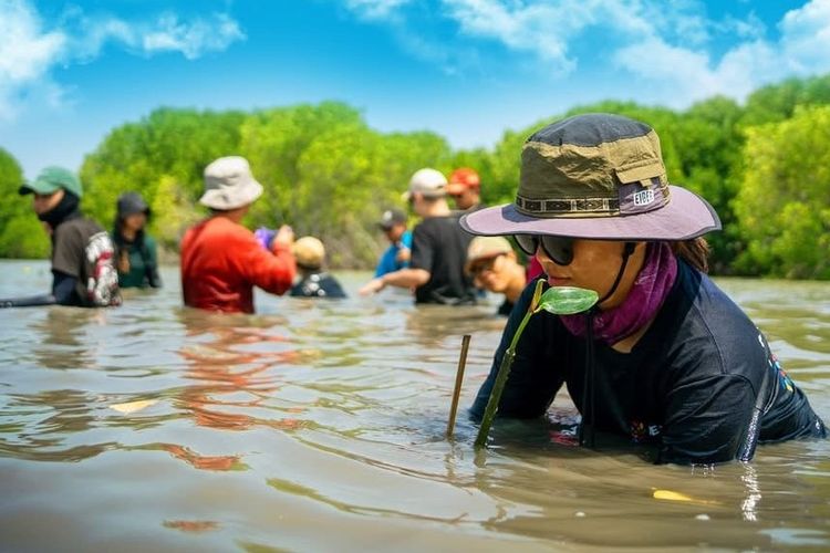 Penanaman Mangrove di Subang unt menebus jejak karbon Kompas.com dalam rangka ulang tahun ke-29 Kompas.com, 14 September 2024. Penanaman bekerja sama dengan Wanadri dan National Geographic Indonesia.