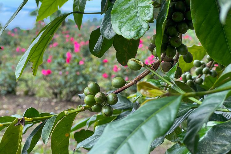 Tanaman kopi di Dukuh Dumuk, Mriyan, Tamansari, Boyolali yang ditanam di kebun mawar.(KOMPAS.com/ANGGARA WIKAN PRASETYA)