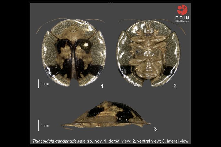 Salah satu temuan spesies baru kumbang kura-kura dari genus Thlaspidula yang diberinama Thlaspidula gandangdewata di Sulawesi oleh tim peneliti BRIN. (BRIN)