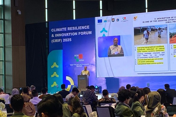 Direktur Jenderal Bina Administrasi Kewilayahan Kementerian Dalam Negeri (Kemendagri), Safrizal Z A,menjelaskan soal pendanaan iklim dari APBN, Rabu (21/5/2025). (KOMPAS.com/ZINTAN PRIHATINI)