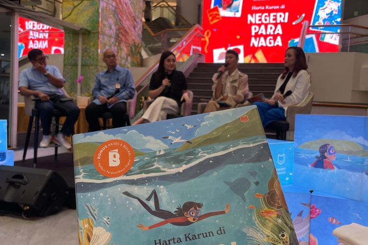 Buku anak berjudul Petualangan Kelly: Harta Karun di Negeri Para Naga diluncurkan BukuAku (20/7/2025) bertujuan memperkenalkan literasi lingkungan sekaligus merayakan kekayaan alam bawah laut Indonesia.(DOK. BUKUAKU)