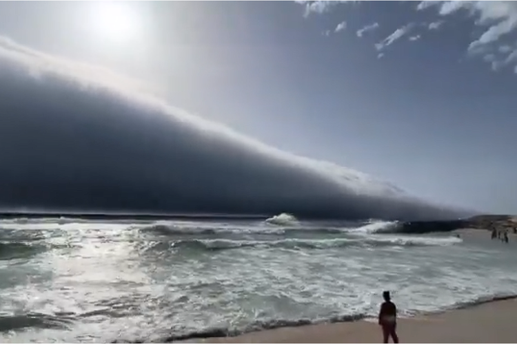 (Tangkapan layar video awan tsunami di Portugal.)