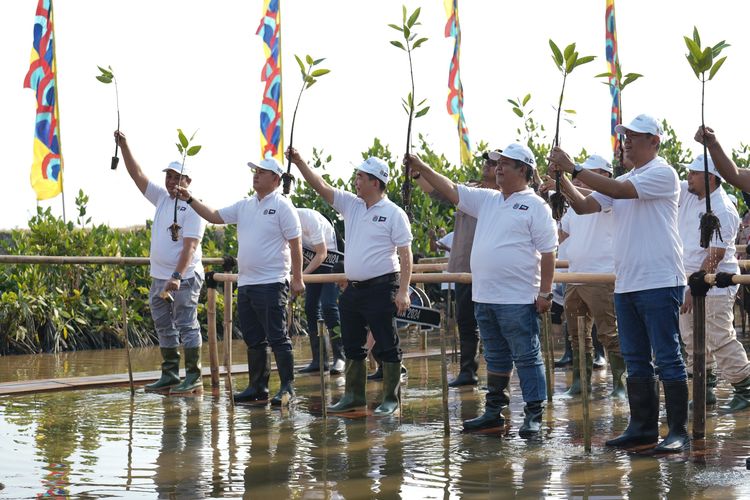 Aksi tanam 10.000 bibit mangrove secara serentak di pesisir Jakarta sebagai bagian dari peringatan Hari Mangrove Sedunia, Sabtu (26/7/2025). (Dok. KCN)