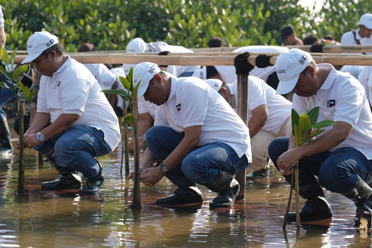Penanaman bibit mangrove sebagai simbol komitmen bersama dalam menjaga pesisir Jakarta dari ancaman abrasi dan perubahan iklim.