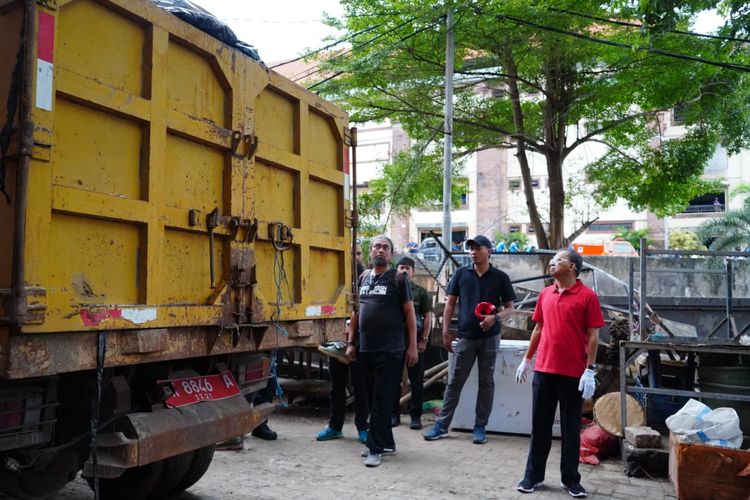 Gubernur Bali Wayan Koster ikut ambil bagian membersihkan sampah pascabanjir di kawasaan Pasar Badung dan Pasar Kumbasari, Denpasar, pada Minggu (14/9/2025) pagi.