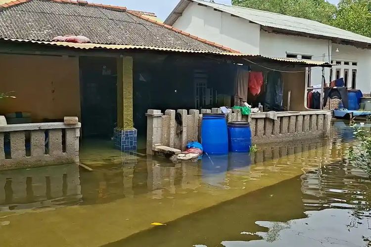Kondisi banjir rob yang merendam Desa Samudra Jaya, Tarumajaya, Kabupaten Bekasi pada Minggu (7/12/2025).